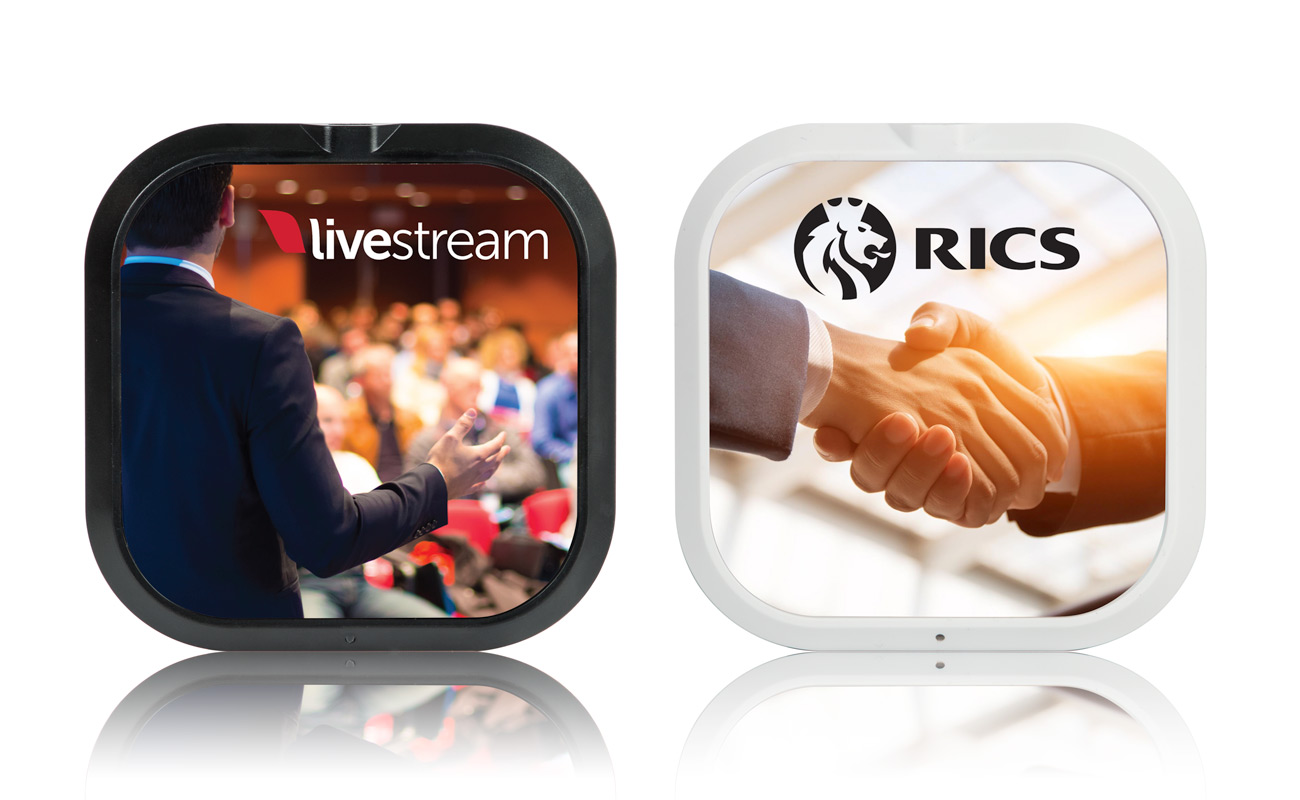 Aero Trådløs opladeren har et stort branding område, hvor du kan få trykt dit billede, logo, slogan og meget mere. Dens design og funktioner vil være et hit til din næste konference, møde eller begivenhed. Aero er kompatibel med alle Qi-aktiverede enheder og andre trådløs opladningsenheder såsom de nye iPhone™, Samsung, Google, Microsoft, Sony, HTC og LG smartphones.